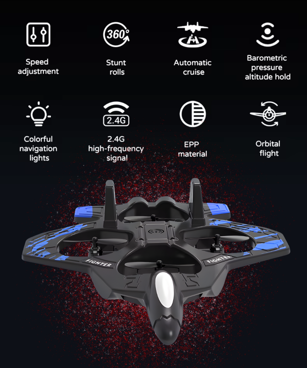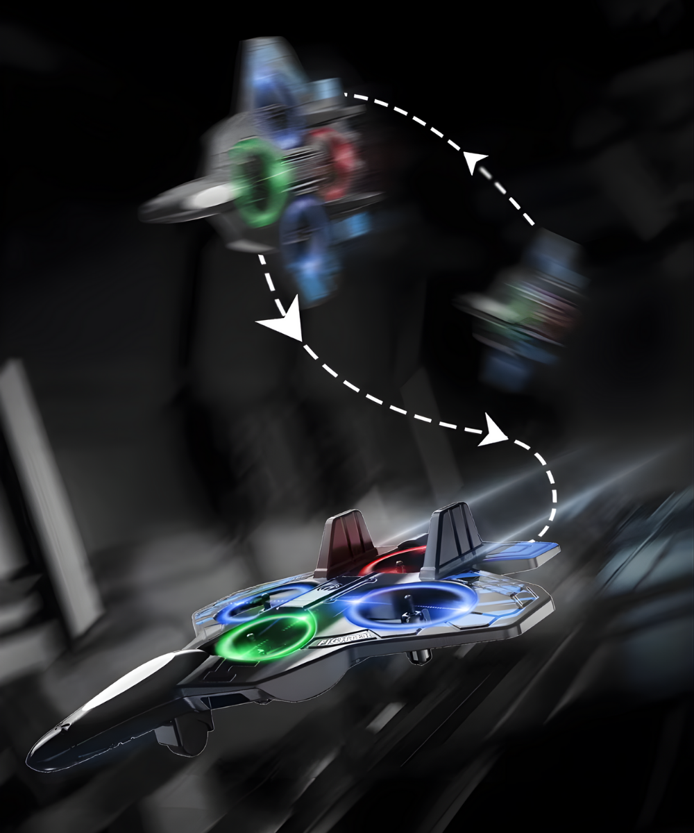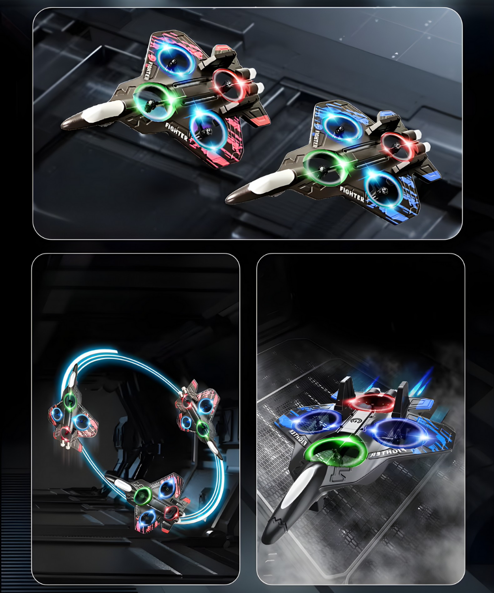 SkyFighter a été pensé pour créer un vrai effet “wahou” dès le premier vol : pilotage simple, sécurité au top, acrobaties en un clic et un prix qui reste accessible.